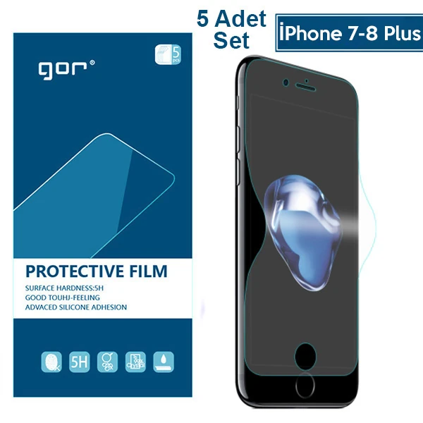 GOR İPhone 8 Plus-7 Plus HD Ekran Koruyucu Jelatin 5 Adet Set