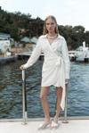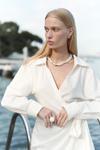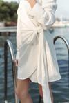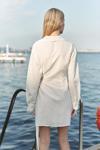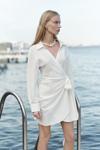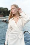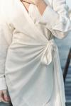 Kruvaze uzun kol ve manşetli, yandan bağlamalı, keten karışımlı elbise.