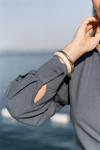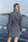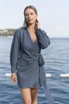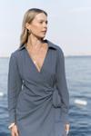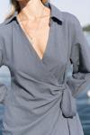 Kruvaze uzun kol ve manşetli, yandan bağlamalı, keten karışımlı elbise.