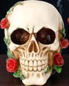 E-life shop Gotik Dizayn Gül Desenli Kafatası Biblo Dekoratif Kurukafa Heykel Cadılar Bayramı Ev Ofis Süs Eşyası