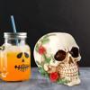 Gotik Tasarım Gül Desenli Kafatası Biblo Dekoratif Reçine Kuru Kafa Heykel Cadılar Bayramı Ev Ofis Süs Eşyası