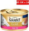Et taneciklerinden üretilmiştir.sığır etinin kahverengi bir sos ile karışımı kediler için vazgeçilmez bir lezzet sunmuştur Yedirme miktarı : Gourmet Gold Sığır Etli Kedi Konserve Maması aktivite seviyeleri normal olan yetişkin kediler yaş 1-7 yaş için tasarlanmıştır.
