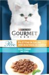 Gourmet Perle Karışık yaş kedi maması özel sos eşliğinde ızgarada pişirilerek hazırlanmış, gerçek Sığır Eti, Tavuk ve Ton Balığı parçaları içeren, lezzetli yetişkin kedi mamasıdır. Daha yoğun bir lezzet için, özel sos eşliğinde fileto edilmiştir.