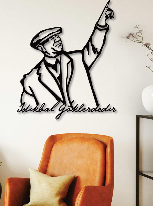 Gowpenart Dizayn Atatürk "İstikbal Göklerdedir" Dekoratif Siyah Metal Duvar Ev & Ofis Tablosu Hediye Tablo