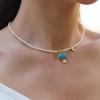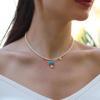 Göz Turkuaz İncili Gold Doğaltaşlı Gümüş Kolye