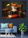 Gözlüklü Kitap Okuyan Tilki Dekoratif Kanvas - Mdf Ahşap Tablo