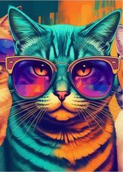 Gözlüklü Renkli Kedi Tasarım Ahşap Tablo 25cmX 35cm