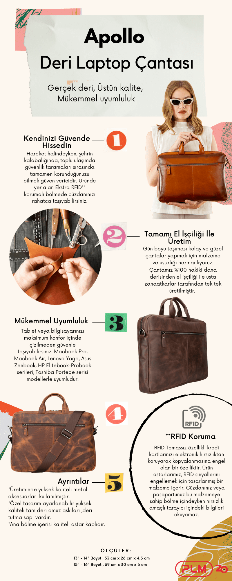 Özel tasarım ayarlanabilir yüksek kaliteli tam deri omuz askıları ,deri tutma sapı vardır.