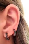 Granat taşlı gümüş rose bombeli halka cift küpe