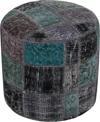 Yuvarlak formuyla modern ve klasik tarzları harmanlayan bu koyu gri turkuaz renkli el dokuma patchwork puf, oturma odanızda veya çalışma alanınızda şık bir dokunuş katıyor.