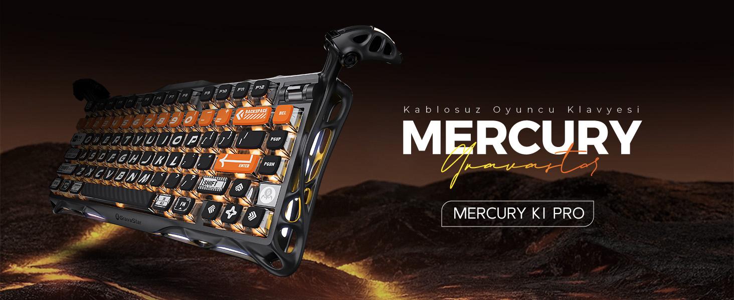 GravaStar Mercury K1 Pro RGB Kablosuz Mekanik Gaming Klavye, Alüminyum Çerçeveli, İngilizce Q, Cyberflare