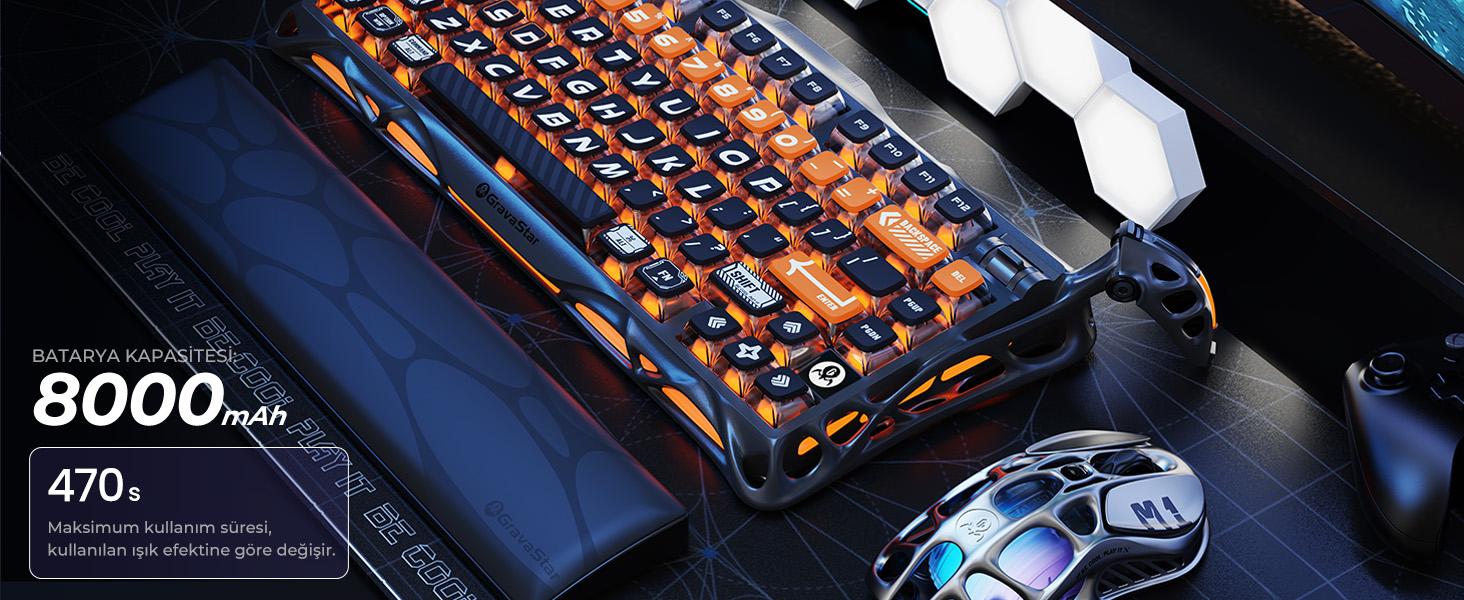 K1 pro gaming klavye, 2,4 GHz kablosuz bağlantı, bluetooth 5.0 ve kablolu bağlantı seçeneklerine sahiptir. Windows ve macOS ile uyumludur. 8000 mAh bataryası, 470 saate kadar kullanım süresi ve istikrarlı performans sağlar.