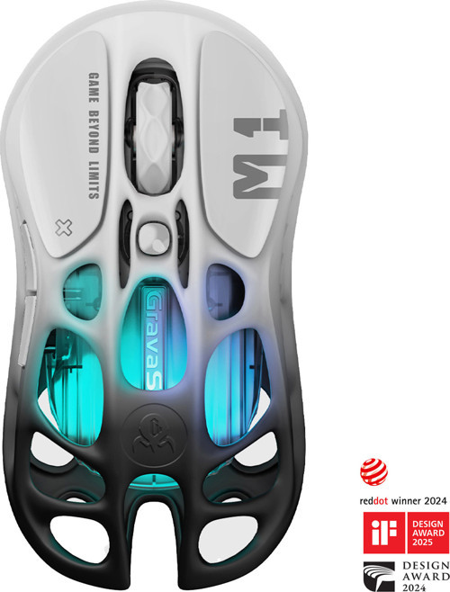 Gravastar Mercury M1 Pro RGB 26K DPI Optik Gaming Mouse, Kablosuz, Magnezyum Alaşımlı, Programlanabilir 5 Tuşlu, Siyah-Beyaz