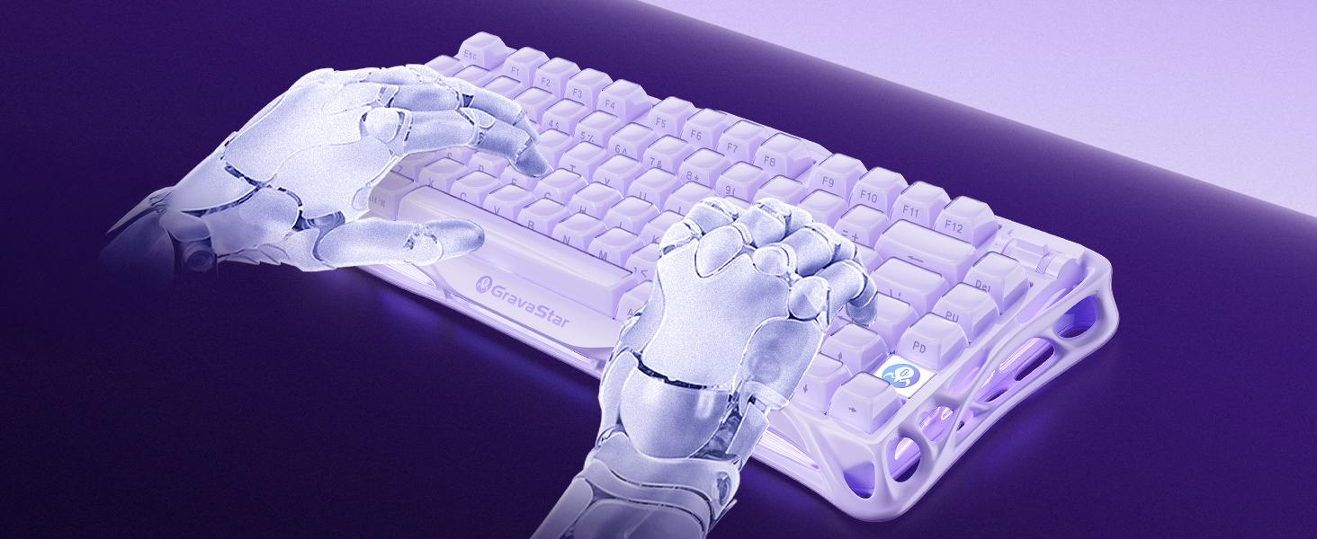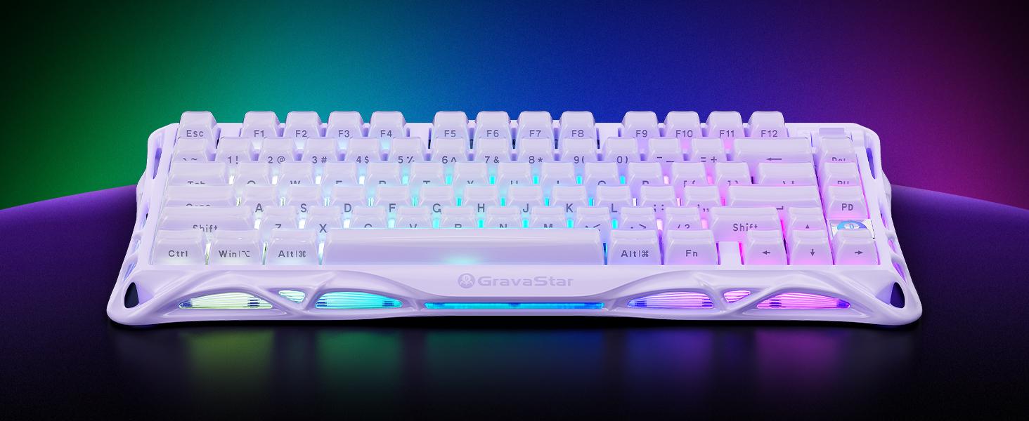 GravaStar Mercury V75 HE Hall Effect Manyetik Switch Gaming Klavye, Hot-Swappable, Rapid Trigger, 8000Hz, 0.125ms Ultra Düşük Gecikme, Kablolu, RGB Işıklı, İngilizce Q, Lavender Purple
