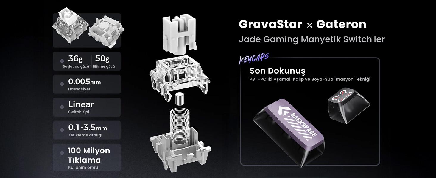 Gravastar Mercury V75 Pro HE Hall Effect Manyetik Switch Gaming Klavye, Hot-Swappable, Rapid Trigger