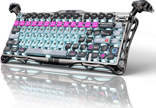 GravaStar Mercury V75 Pro HE Hall Effect Manyetik Switch Gaming Klavye, Hot-Swappable, Rapid Trigger, 8000Hz, 0.125ms Ultra Düşük Gecikme, Kablolu, RGB Işıklı, İngilizce Q, Cyberpunk