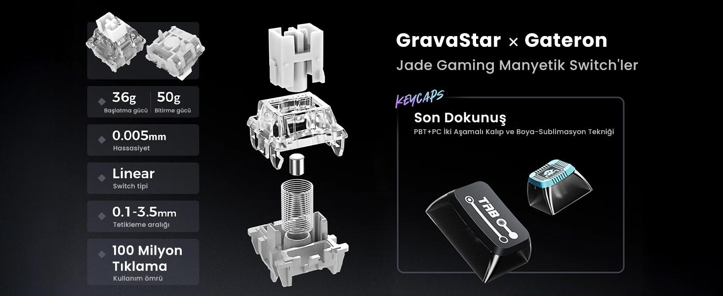 1 x GravaStar Mercury V75 Pro HE Hall Effect Manyetik Switch Gaming Klavye