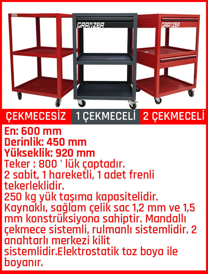 GRAYZER 2 ÇEKMECELİ PARÇA TAŞIMA TAKIM ARABASI