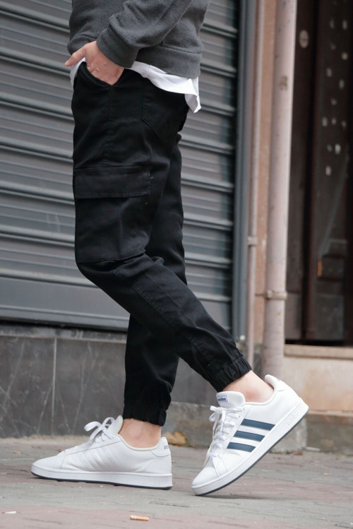 Green Poll Erkek Siyah Jogger Kargo Cepli Kot Pantolon - Lastikli Bel Ve Paça, Esnek Kumaş