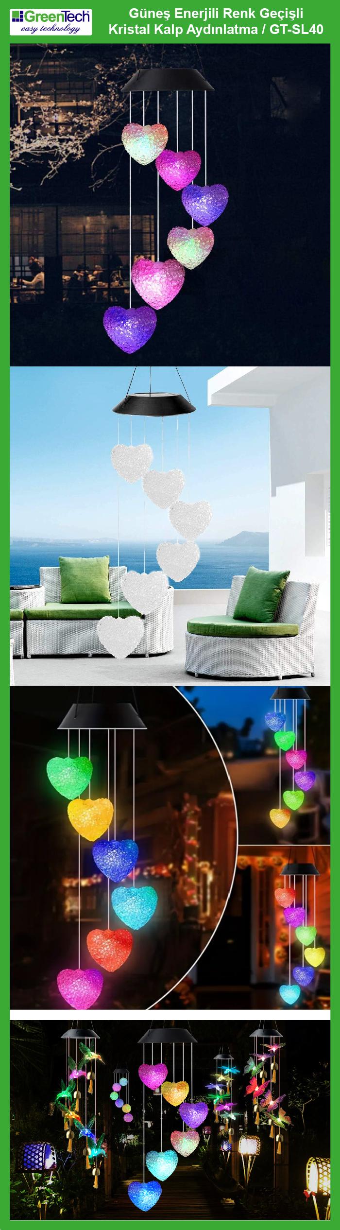 Greentech Güneş Enerjili Renk Geçişli Kristal Kalp Aydınlatma / GT-SL40