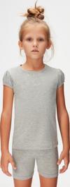 Gri Basic Kız Çocuk Sıfır Yaka Karpuz Kol Tişört