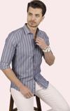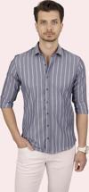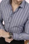 Gri Beyaz Çizgili Slimfit Erkek Gömlek