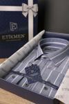 Etikmen Beyaz Armür & Lacivert Çizgi Desen Hediye Kutulu Gömlek Kravat Seti