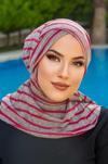 Aişe Tesettür Kırmızı Çapraz Deniz - Havuz Bonesi