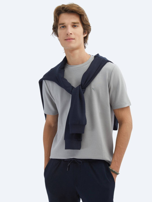 Kip Gri Düz Bisiklet Yaka T-Shirt