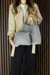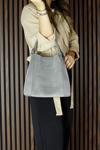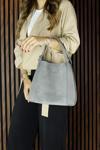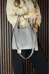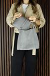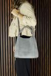 Erkan Saçmacı Gri Hakiki Dana Süet Manyetik Kapaklı Büyük Boy Günlük Omuz Çantası ve Askılı El Çantası