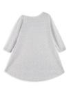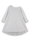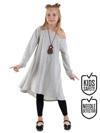 Orta kalın pamuklu kumaştan kız çocuk gri elbise. Uzun kollu, düşük omuzlu, dizaltı boy. Elbisenin etekleri asimetrik kesimlidir. Kolye ürüne ait değildir. Her türlü aksesuar ile kombinlenebilir. Tüm Denokids ürünleri çocuk güvenliği düşünülerek üretilmiştir ve iğne dedektörlerinden geçirilmiştir.