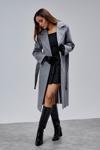 Gri Kruvaze Kapama Belden Bağlamalı Geniş Kalıp Kaşe Kaban