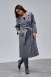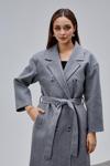 Bolivente Gri Kruvaze Kapama Belden Bağlamalı Geniş Kalıp Kaşe Kaban