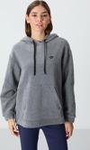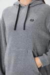 Tommy Life Gri Melanj Kalın Yumuşak Dokulu Kapüşonlu Oversize Nakışlı Polar Kadın Sweatshirt - 97292