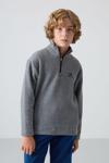 Tommy Life Gri Melanj Kalın Yumuşak Dokulu Standart Fit Nakışlı Polar Erkek Çocuk Sweatshirt - 11221