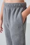 Gri Melanj Kalın Yumuşak Dokulu Standart Fit Nakışlı Polar Kız Çocuk Eşofman Alt - 75155