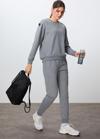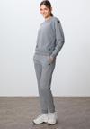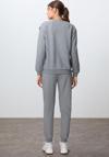 Tommy Life Gri Melanj Kompakt Pamuklu Kalın Pürüzsüz Dokulu O Yaka Oversize Fit Kadın Eşofman Takım - 95341