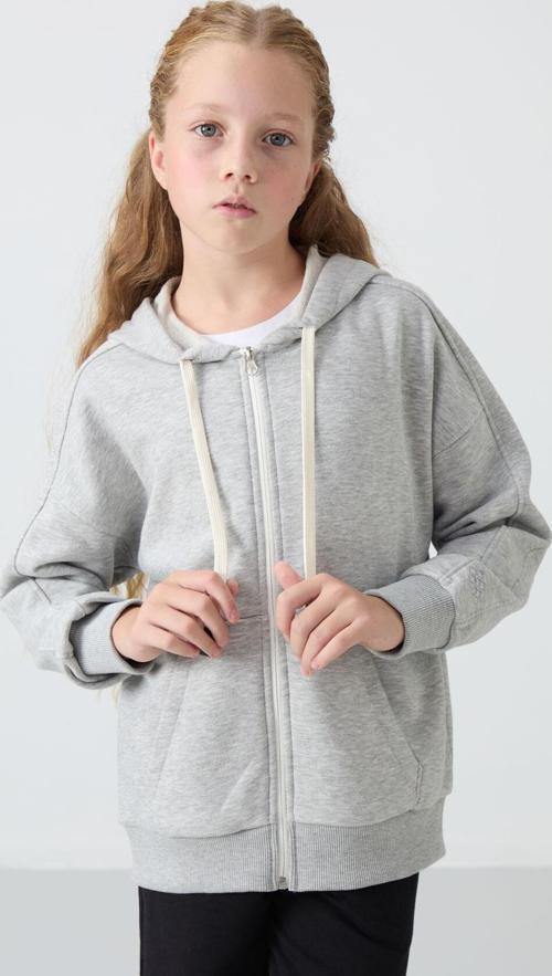 Tommy Life Gri Melanj Pamuklu İçi Tüylü Yumuşak Dokulu Standart Fit Nakışlı Kız Çocuk Sweatshirt - 75149