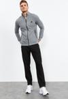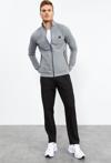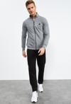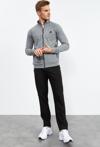 Tommy Life Gri Melanj - Siyah Dik Yaka Fermuarlı Standart Kalıp Klasik Paça Erkek Eşofman Takımı - 85152
