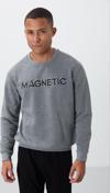 Tommy Life Gri Melanj Yazı Nakışlı O Yaka Rahat Form İçi Polarlı Erkek Sweatshirt - 88020