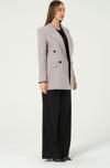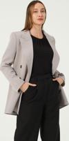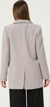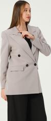 Kadın Gri Astarlı Düğmeli Omuz Vatkalı Süs Cepli Yırtmaç Detaylı Blazer Ceket