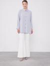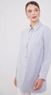 KADIN BROŞLU ÇİZGİLİ KETEN TESETTÜR GÖMLEK - Image 1