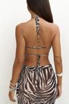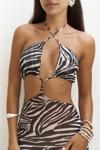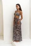 Göğüs kısmı üçgen kesim çapraz detaylı yanları açık ve desenli hafif dokulu kumaştan tasarlanmıştır.