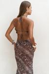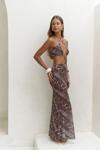 Göğüs kısmı üçgen kesim çapraz detaylı yanları açık ve desenli hafif dokulu kumaştan tasarlanmıştır.