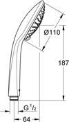 Uyarı ve Genel Açıklamalar: Rain, Champagne spray, SmartRain, GROHE DreamSpray® mükemmel akış, GROHE SprayDimmer ile su akışını azaltma, GROHE StarLight® krom kaplama, SpeedClean kireç kırıcı sistem, uzun ömür için Inner WaterGuide, universal montaj sistemi, tüm standart duş hortumlarına uyumlu