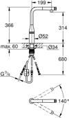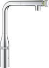 Basit bir düğmeyle çalışan kumanda kolsuz GROHE Essence SmartControl batarya ile mutfak tezgahınızda modern bir görünüm yakalayın. İnce ve şık yapısı, tek delikli montaj için tasarlanmıştır. Yenilikçi SmartControl özelliği sayesinde yalnızca bir düğmeye basarak su akışını başlatabilir ve durdurabilirsiniz. Su hacmini, su tasarrufu sağlayan ekonomik mod ve tam akış arasında ayarlamak için ise düğmeyi çevirmeniz yeterlidir. Yalnızca dirseğinizle veya bileğinizle dokunarak ellerinizi kullanmadan da suyu açabilirsiniz. Sıcaklık, batarya gövdesinde yer alan karıştırma valfiyle kolayca ayarlanır. Batarya, L şeklinde yüksek çıkış ucu sayesinde büyük kapları veya vazoları doldurmak için geniş ve rahat bir çalışma alanı sunar. 360° dönebilen çıkış ucu, büyük ya da çift hazneli eviyeler için idealdir. Düz akışa sahip spiralli sprey başlığı, ilave esneklik sağlayarak su sıçratmadan sebzeleri hazırlamayı ve eviyeyi temizlemeyi kolaylaştırır. GROHE Magnetic Docking özelliği, işiniz bittiğinde sprey başlığının takılmadan yerine geri çekilmesini sağlar. Esnek bağlantı hortumlarına sahip GROHE QuickFix Plus hızlı montaj sistemi sayesinde, montaj işleminin çabuk ve basit olacağından emin olabilirsiniz. Bu monoblok mutfak bataryası, parlak ve dayanıklı GROHE StarLight krom kaplamaya sahiptir.