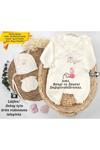 Gros Shop %100 Pamuk Organik 4 Katlı Müslin Kumaş 3'Lü Hastane Çıkış Seti (Kişiye Özgü İsimli Nakış Desenli)