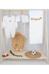 Gros Shop %100 Pamuk Organik Dantelli Tulum 4'Lü Hastane Çıkış Seti (Kişiye Özgü İsimli Nakış Desenli)