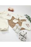 Gros Shop 4Katlı Müslin 6'Li Bağcıklı Tulum %100Pamuk Hastane Çıkışı-Hediyelik(Kişiyeözgü İsimli Nakışdesenli)