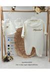 Gros Shop Fırfır Yakalı Müslin 4'Lü Hastane Çıkış Mevlüt Seti %100 Pamuk (Kişiye Özgü Isimli Nakış Desenli)